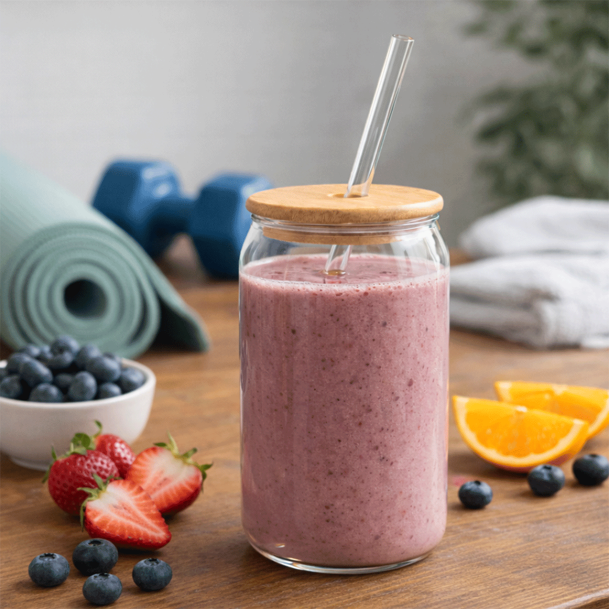 Bambu Kapaklı Pipetli Borosilikat Sunum Bardağı (600ml) - Fonksiyonel ve Şık