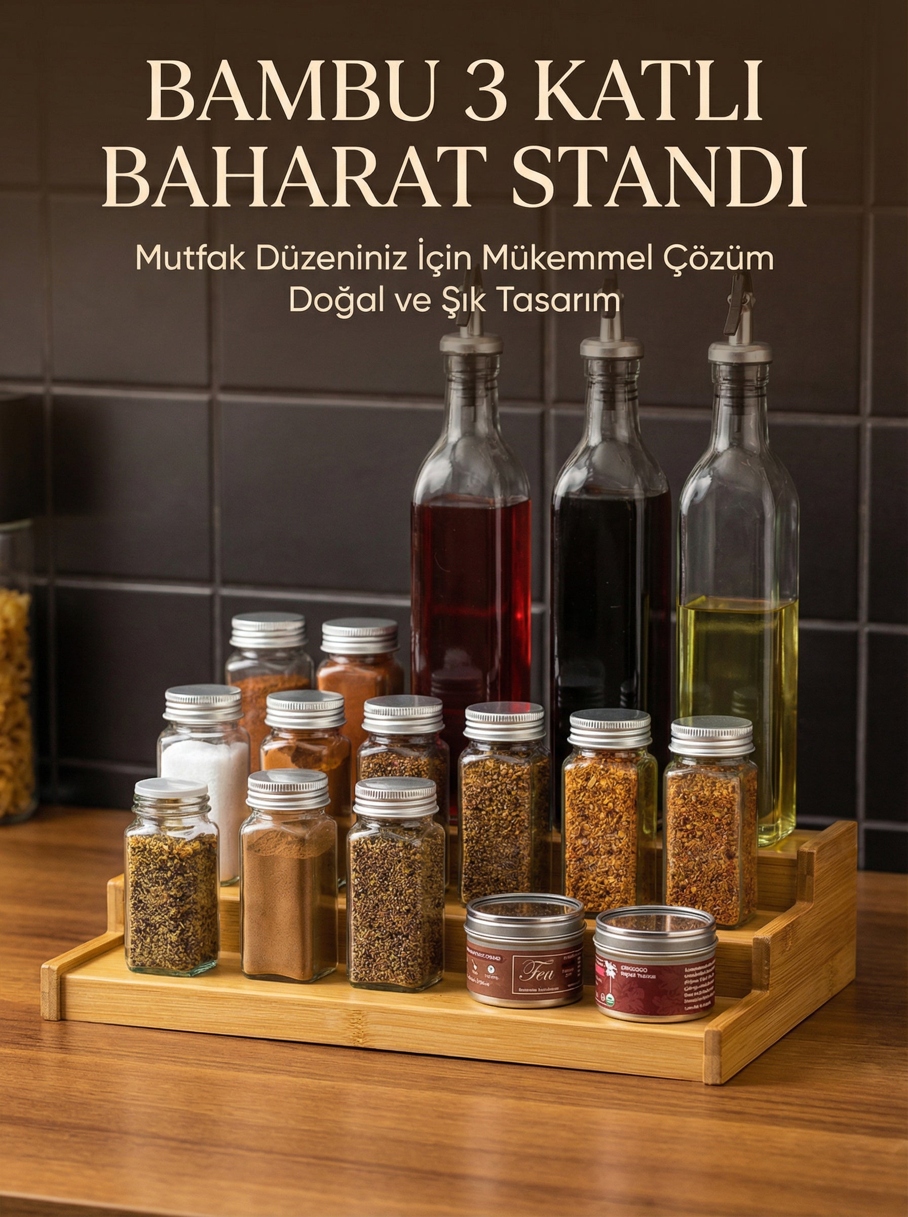 3 Katlı Bambu Stand Organizer, Baharatlık Düzenleyici