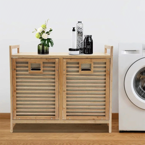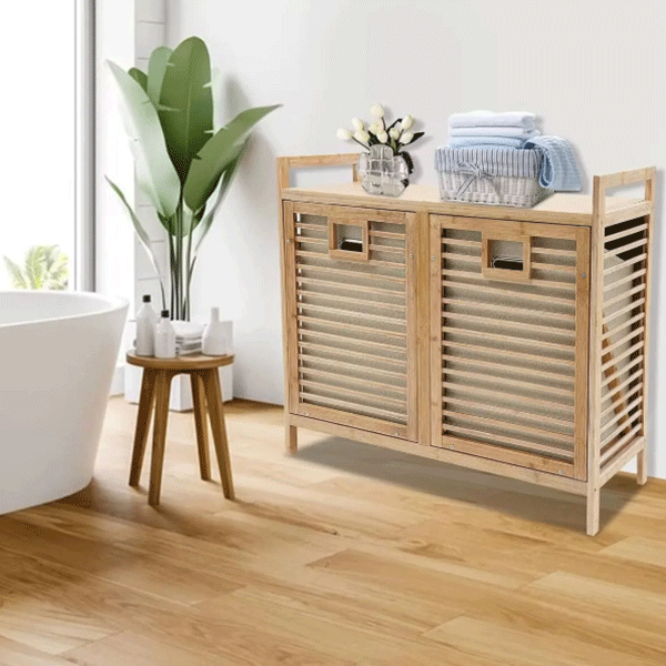Bambu 2 Bölmeli Kirli Sepeti, Bambu Çamaşır Sepeti (78X72X30CM)
