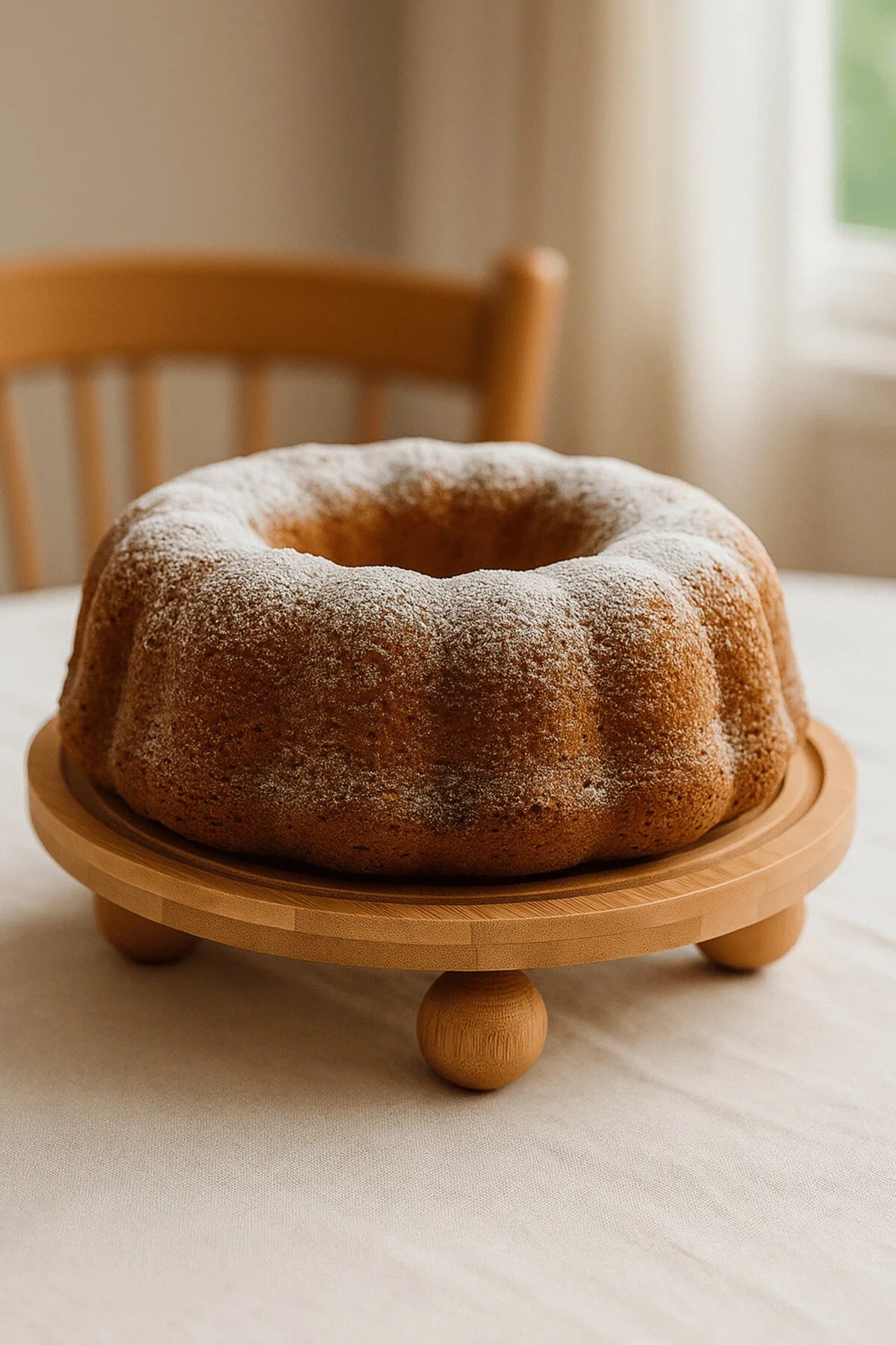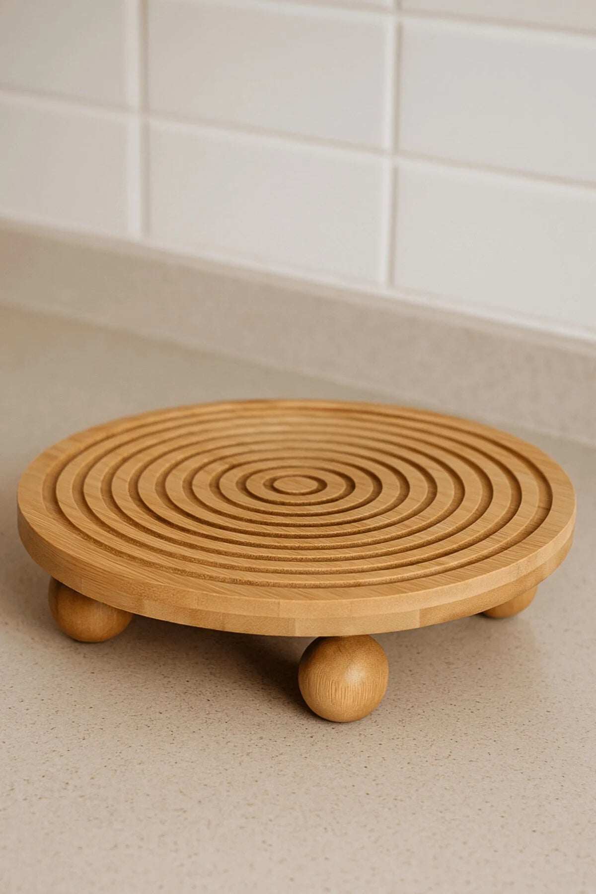 Dört adet top ayaklı yapısı sayesinde tabak zeminden yükseltilir ve hem dengeli hem de dekoratif bir kullanım imkânı sunar 🪵