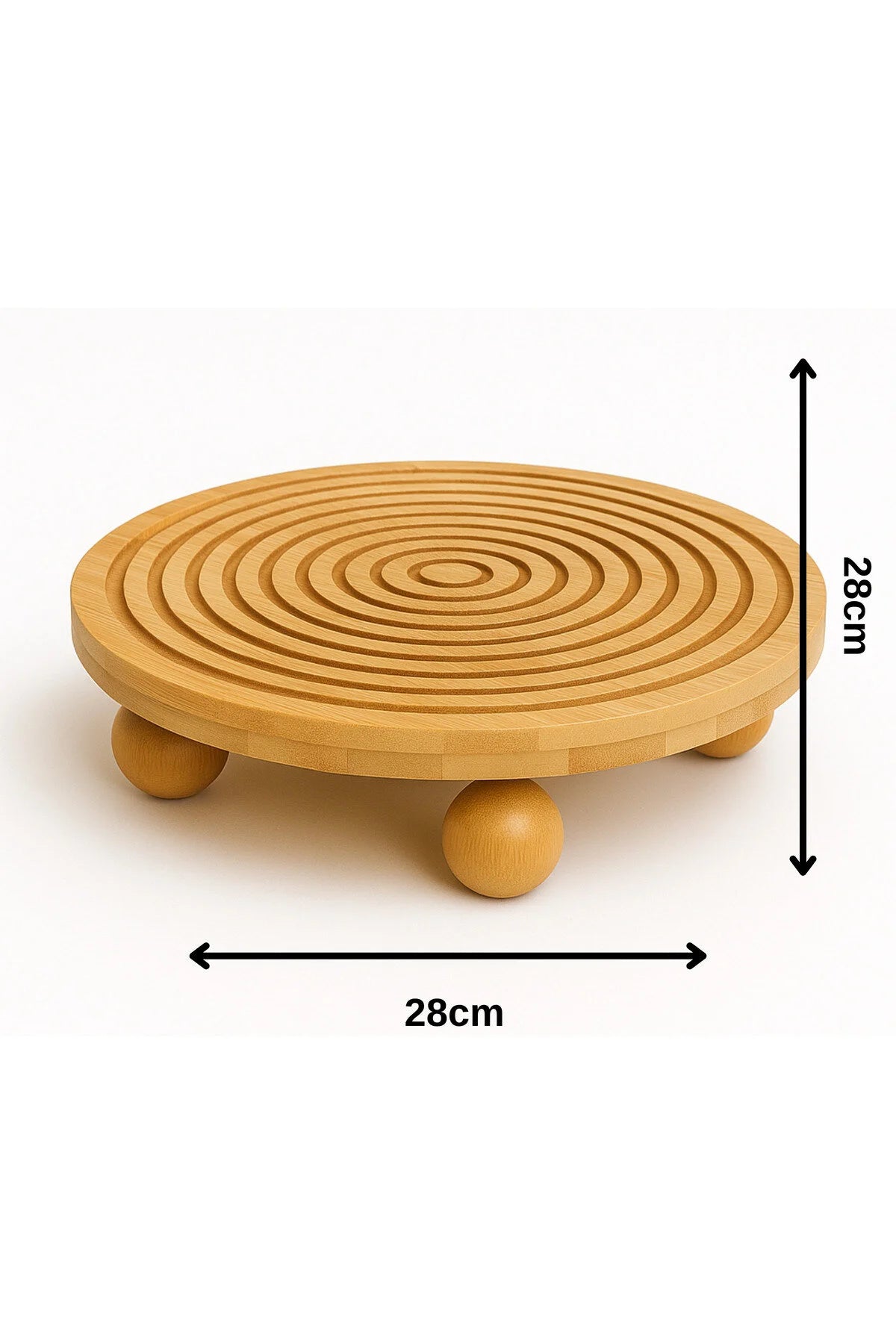 🌿 Bambu Dekoratif Top Ayaklı Yuvarlak Sunum Tabağı 28x28 cm – Şık Servis Tabağı