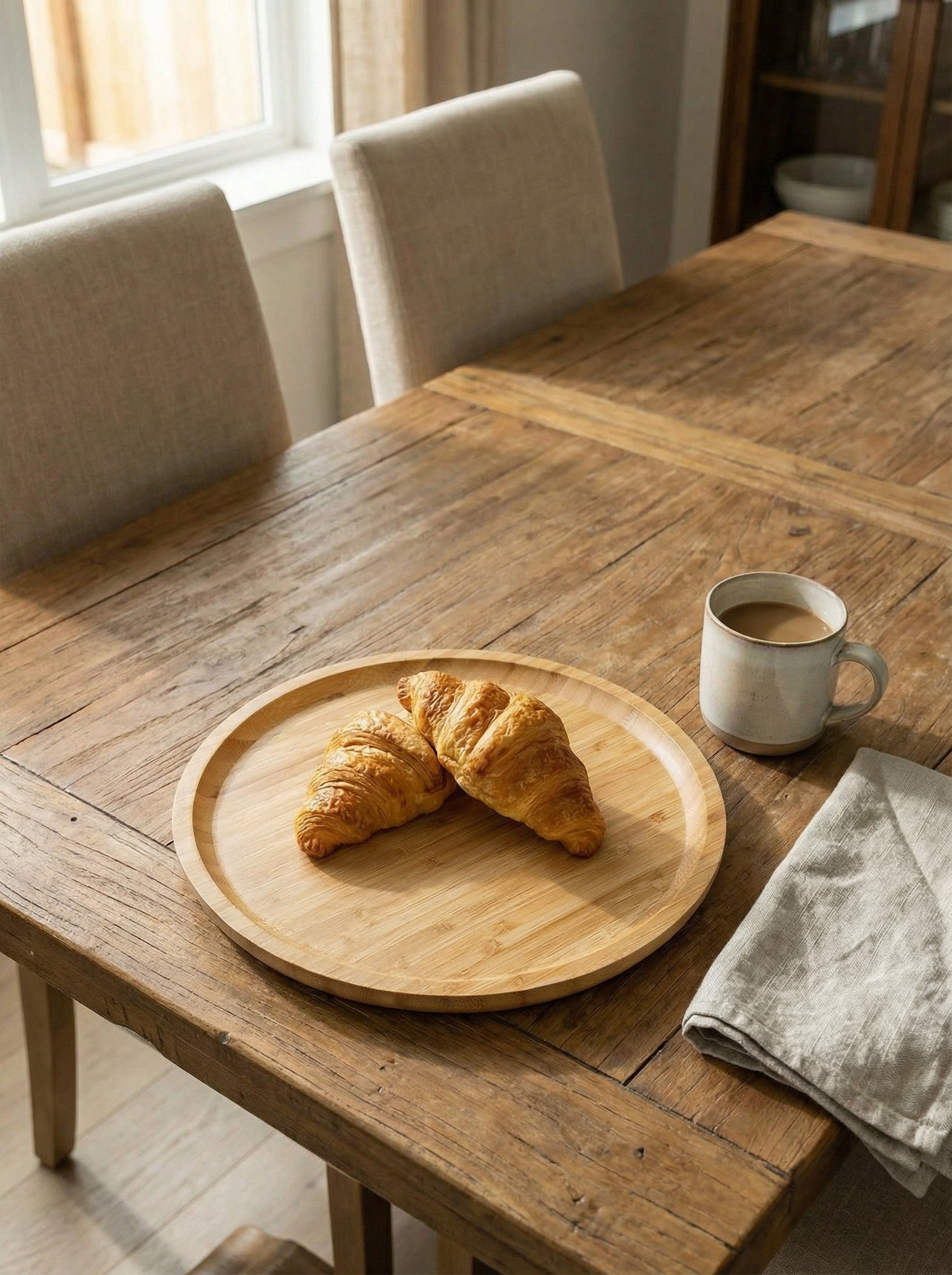 Bambu servis tabakları, sade ve göze çarpmayan doğal ahşap renginde gelir.