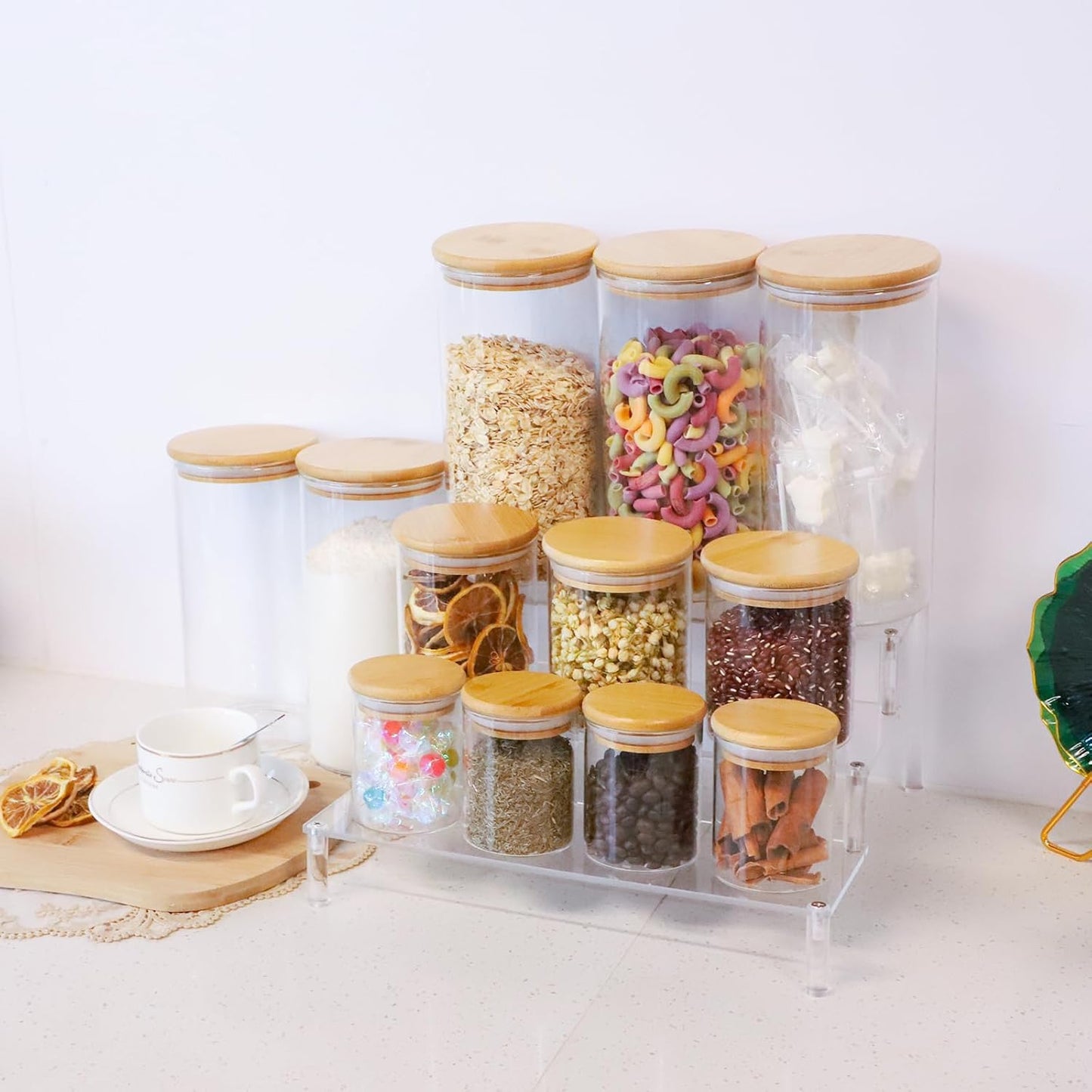 Borosilikat Baharatlık Seti, 12'li Set, Saklama Kabı, Bambu Kapak, 200ml