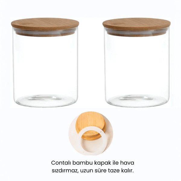 Vakumlu Bambu Kapak: Doğal bambu kapak, hem estetik bir görünüm sunar hem de vakumlu yapısı sayesinde sızdırmazlık sağlar. Bu özellik, yiyeceklerinizi uzun süre taze ve kuru tutmanıza yardımcı olur.