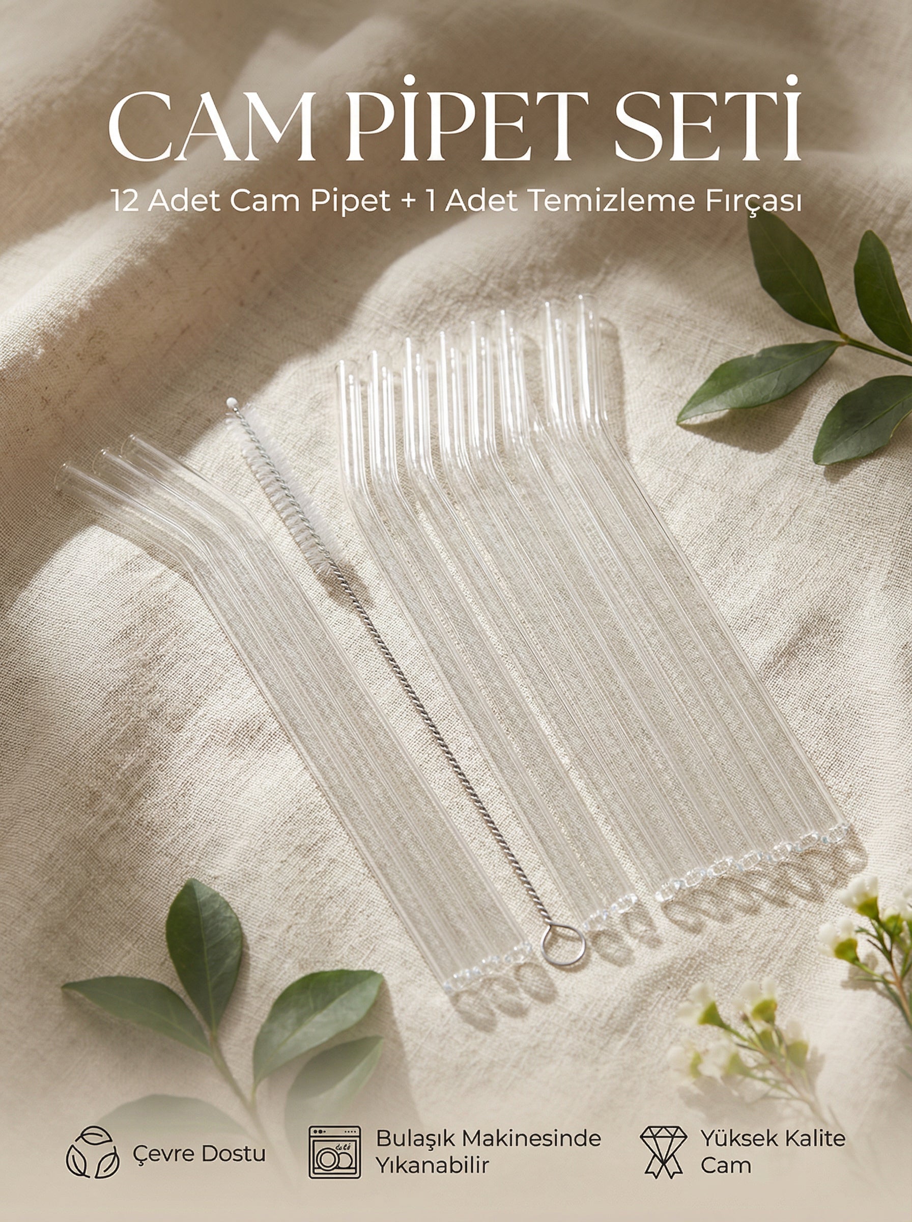 Cam Pipet Seti (12 Adet) ve Temizleme Fırçası