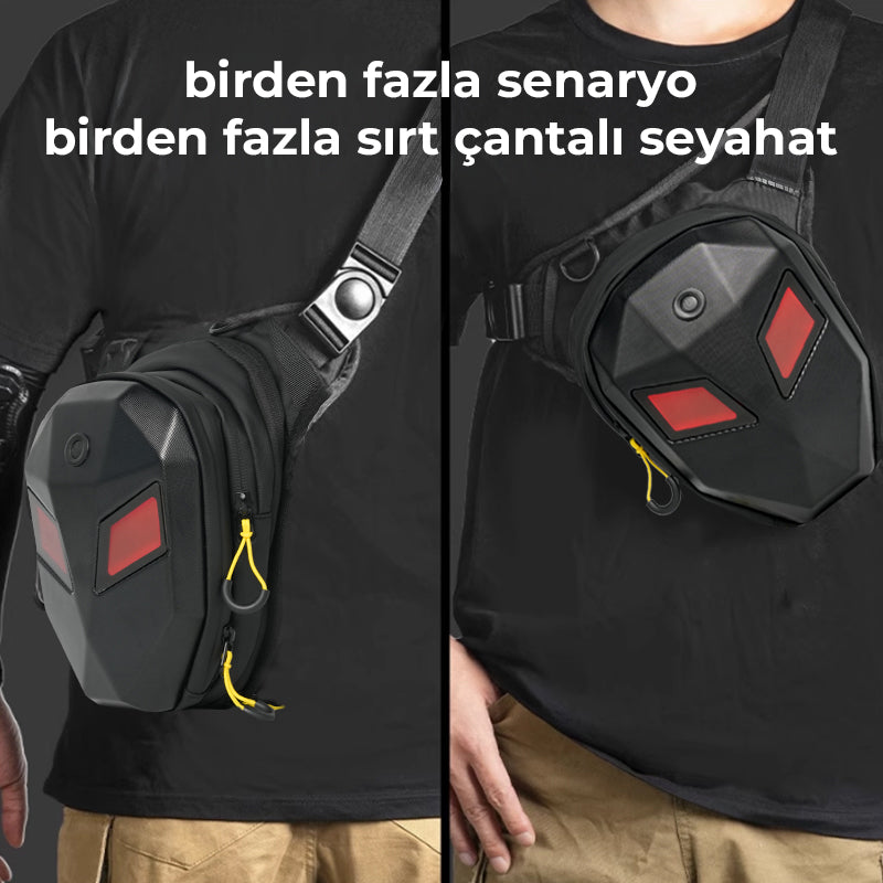 İki ayrı LED ekran sayesinde çanta, dinamik animasyonlar ve renkli görseller ile kişiselleştirilebilir. Sokak modası, cyberpunk stil ve modern kombinler için ideal bir aksesuardır.