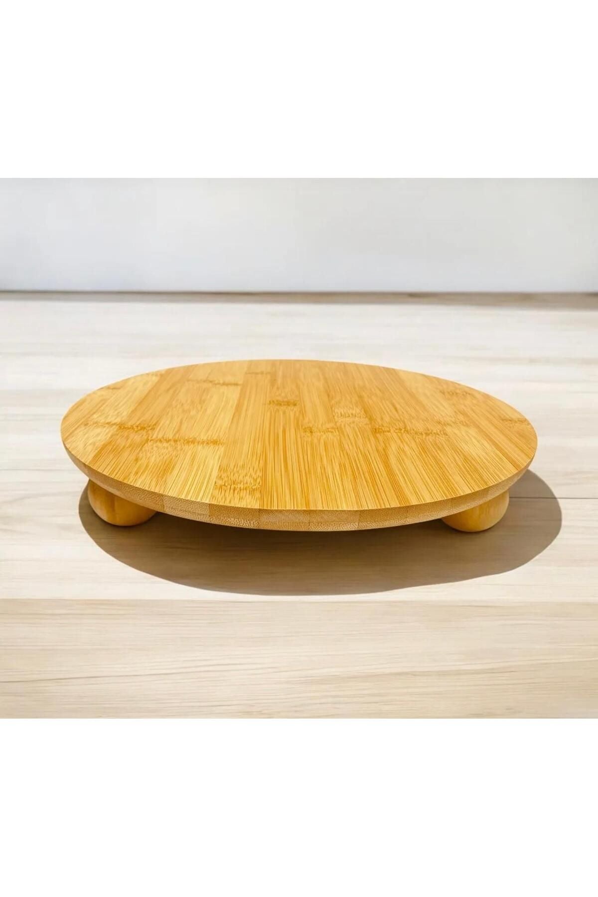 Top Ayaklı Yuvarlak Bambu Stant 29 cm – Doğal ve Şık Sunumluk